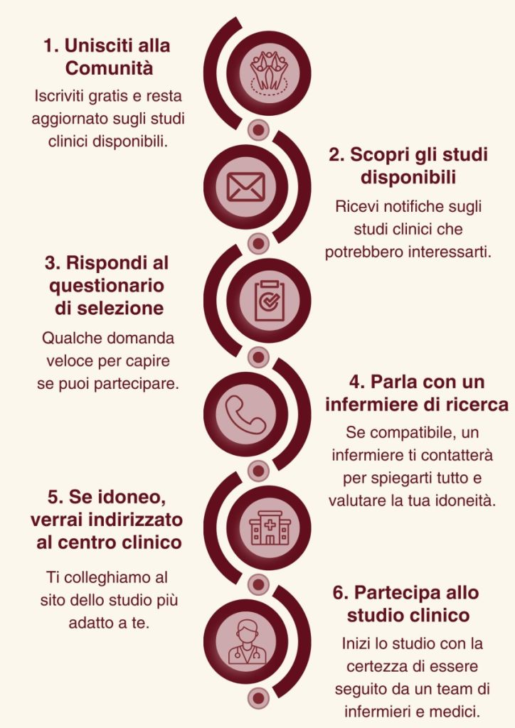 Il paziente non sarà mai lasciato solo: sarà sempre seguito da un team di infermieri, medici e altri professionisti durante tutto il percorso dello studio.